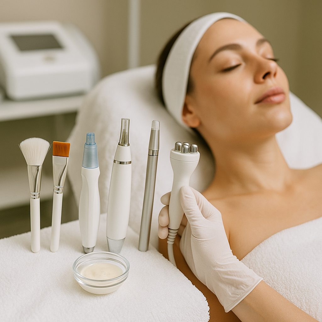 - Peeling: Chemical exfoliation to resurface and brighten dull skin.