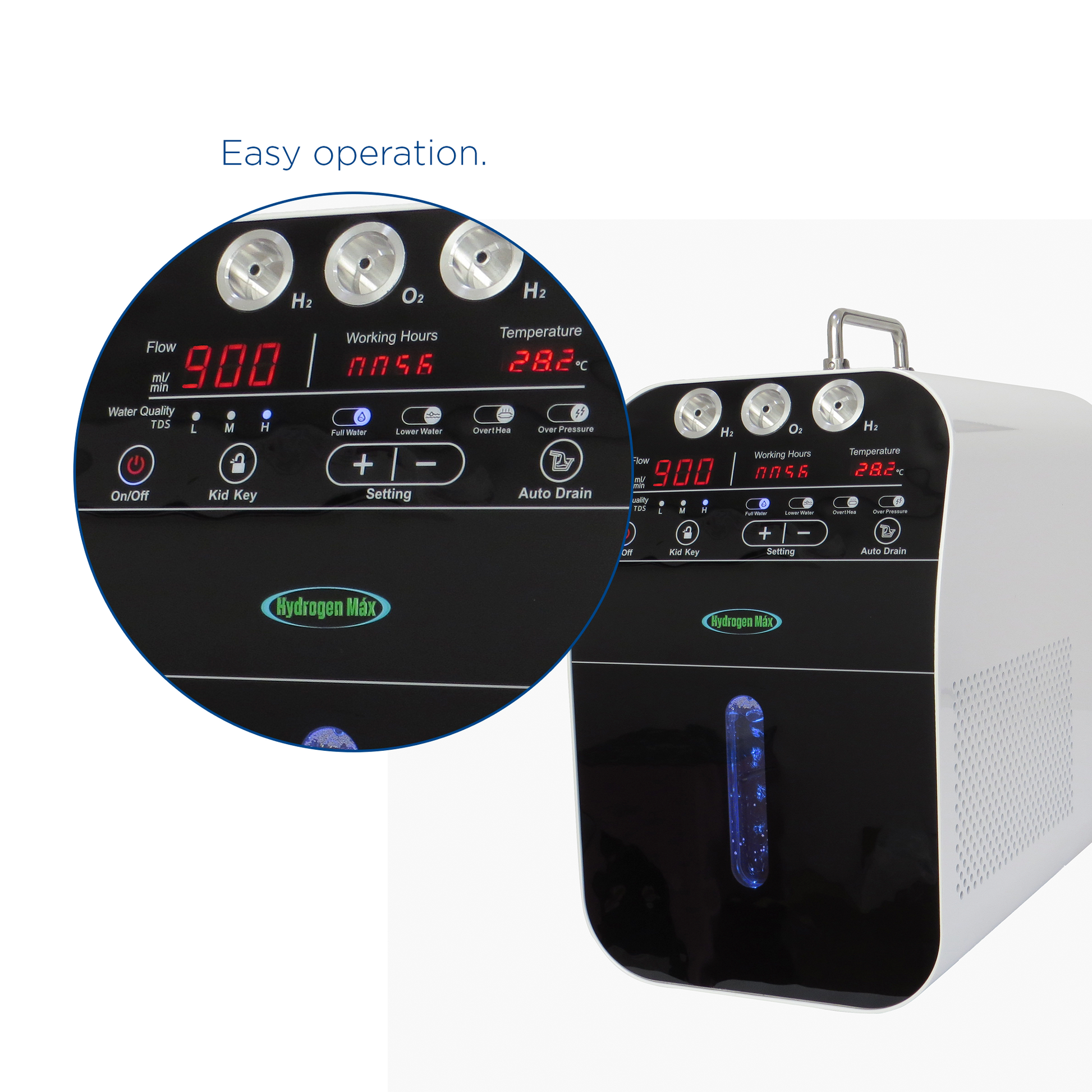 Experimente os benefícios para a saúde do hidrogênio molecular com o Hydrogen Max Molecular Hydrogen Generator 900ml . Projetado para produzir 900ml de água enriquecida com hidrogênio por minuto, este gerador avançado utiliza tecnologia de membrana de troca de prótons de ponta e placas de titânio revestidas de platina para garantir desempenho e pureza ideais.